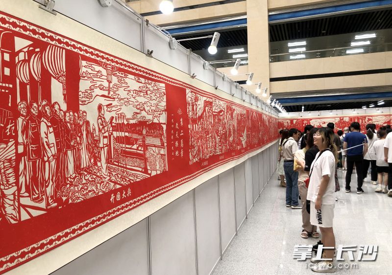 2021年6月29日,剪纸《百年党史百米剪纸长卷》在长沙学院图书馆展出。长沙晚报全媒体记者石祯专摄