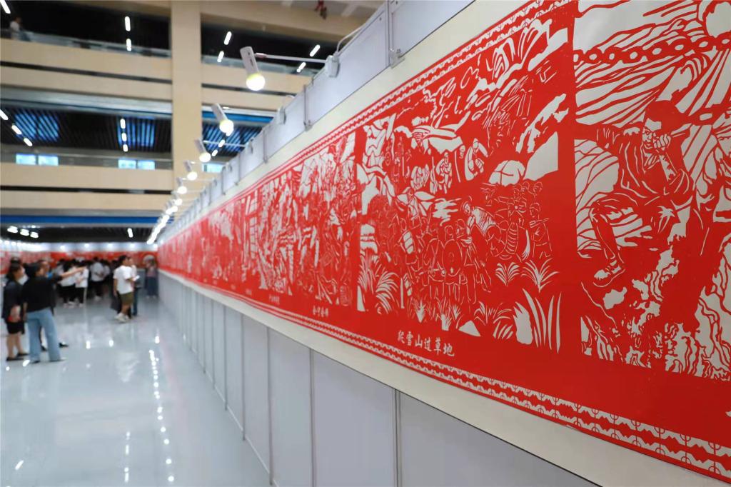 剪纸《百年党史百米剪纸长卷》是长沙学院艺术设计学院100名学生党员和入党积极分子历时两年半之久创作而成。百米剪纸长卷共分为“开天辟地”“改天换地”“翻天覆地”“惊天动地”四个篇章,以中国共产党成立100年来党史上的大事件为主线,围绕党史上的重大历史事件、国家大事件以及党史上的英雄模范人物和先进榜样等内容,来构建剪纸主画面。