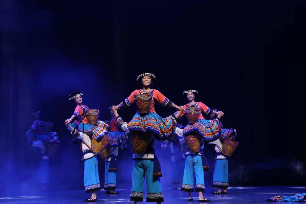舞蹈《十八洞的新苗歌》创意来自精准扶贫的首倡地十八洞村的真实事件,作品通过吸收十八洞村“非遗元素”:苗歌、苗鼓、赶秋、赶边边场等,“当代元素”:精准扶贫、相亲会、拍摄快闪、苗语版的《我和我的祖国》等,同时将其“非遗元素”与“当代元素”进行有机融合,从而达到活态传承苗族舞蹈文化基因、弘扬优秀传统文化的目的。