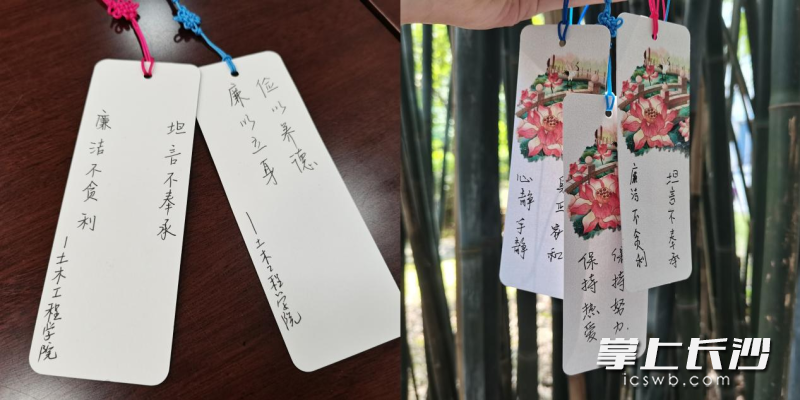 “廉洁书签”融入了长沙学院对毕业生的嘱托和对未来的期许。均为全媒体记者 刘俊 摄