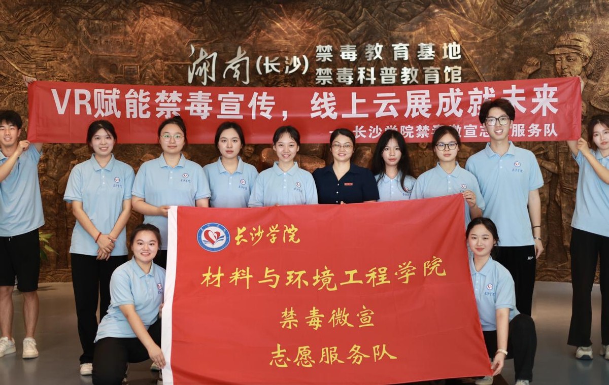 为进一步深化禁毒预防宣传教育工作,全力营造良好的禁毒宣传社会氛围,7月3日,长沙学院禁毒微宣志愿服务队前往湖南(长沙)禁毒教育基地,学习禁毒知识、了解湖南禁毒工作的开展与禁毒成果,为建设禁毒VR线上云展工作奠定扎实禁毒知识基础。