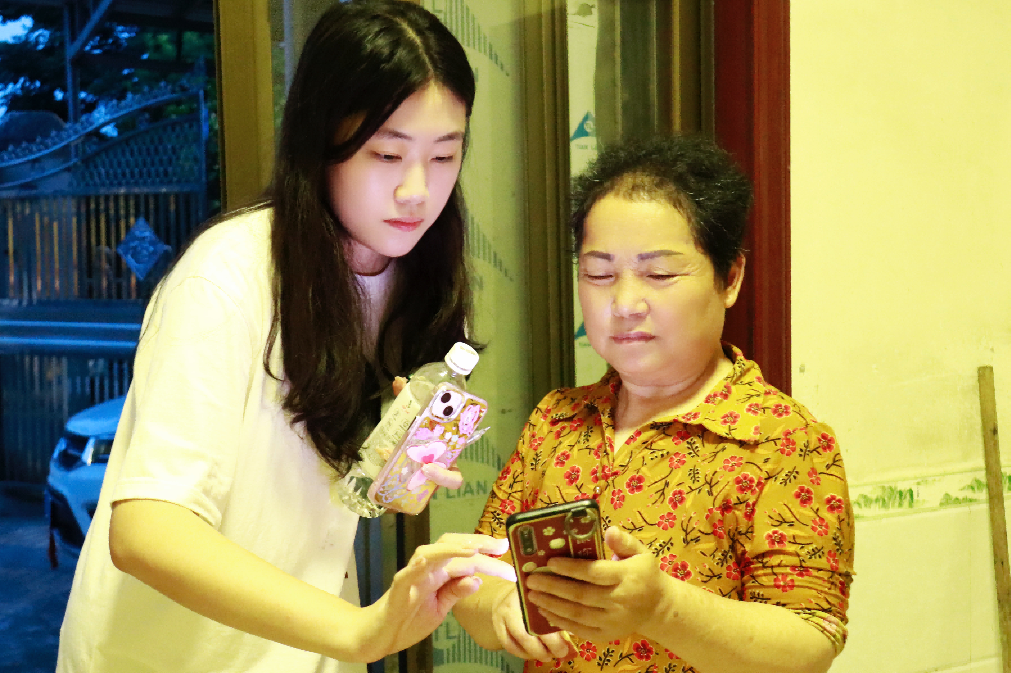志愿者用镜头记录丹洲乡夜景。 拍摄:朱悦嘉