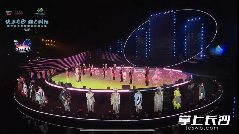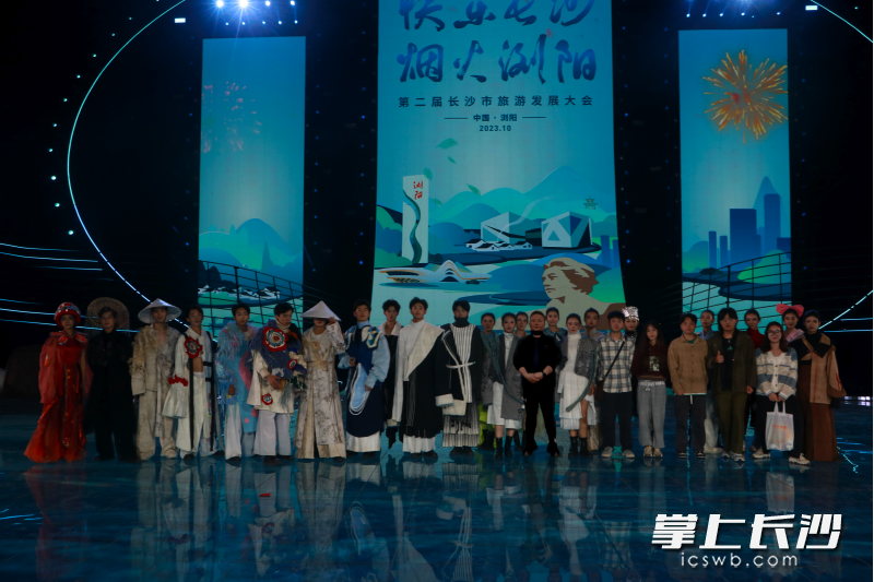 据了解,本次旅发大会邀请长沙学院艺术设计学院参与“星城潮涌”项目,晚会屏幕上展示的25余套国潮服装为该校2022届服装与服饰设计专业的学生设计作品。