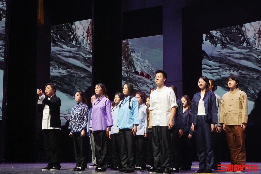 “在话剧准备过程中,我们详细地查阅了很多历史资料,那些文字和图片‘敲’疼了我们的眼睛,我们热泪盈眶、我们努力演出,就想让更多同学也能感同身受,方知今天的生活真的来之不易。”马栏山新媒体学院22播音1班团支部韩易霖分享道。