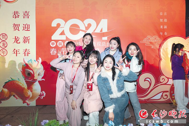 2024央视春晚长沙分会场的演职人员在纪念墙前拍照打卡。长沙晚报全媒体记者 董阳 摄