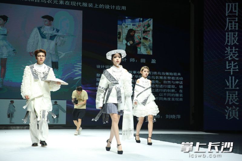 据了解,2023年长沙学院的“元境”虚拟数字服装秀登上了第二届长沙旅游发展大会的舞台,演绎了湖湘文化独有的浪漫;该校与湖南卫视进行虚拟主持人数字服装设计、与湖南湘绣协会开展湘绣旗袍创新设计、与他连德艺术合作少儿汉服的研发;2019级毕业生何洋在潮宗街打造非遗潮品平台,让非遗技艺焕发出新的生机,也通过“非遗+”为长沙文旅融合注入新的活力。