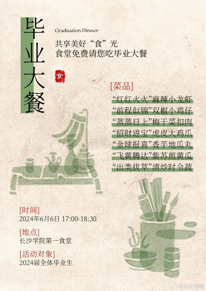 (长沙学院学生食堂推出免费毕业大餐活动)