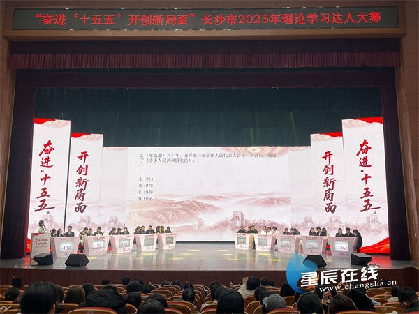 星辰在线12月30日讯(星辰全媒体记者 郭凤湘)12月30日上午,长沙学院大礼堂内掌声雷动、氛围热烈,“奋进‘十五五’开创新局面”长沙市2025年理论学习达人大赛决赛在此举行。来自全市的10支代表队同台竞技,以赛促学、以学促干,生动展现了长沙党员干部群众深学细悟党的创新理论、踔厉奋发迈向新征程的精神风貌。