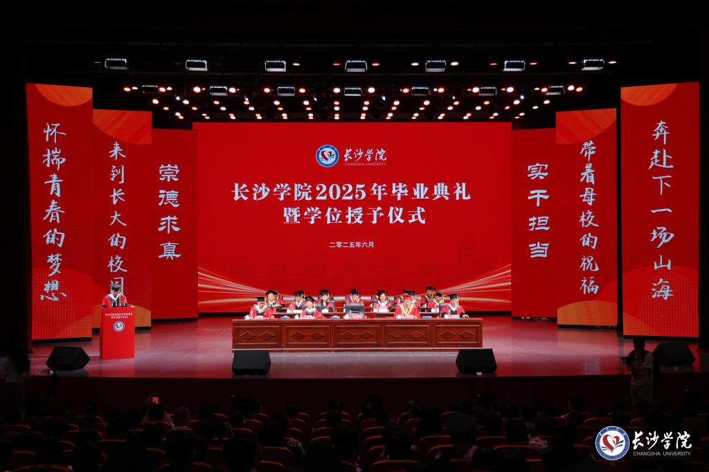20256月16日,长沙学院2025年毕业典礼暨学位授予仪式在学生活动中心举行。3952名长大学子圆满完成学业,即将开启人生新航程。全体在家校领导,学位授予导师,各职能处室、教辅部门主要负责人,各二级学院党政班子成员,毕业班辅导员、班主任,以及2025届毕业生代表共同见证了这一重要时刻。典礼由党委书记杨小云主持。(毕业...
