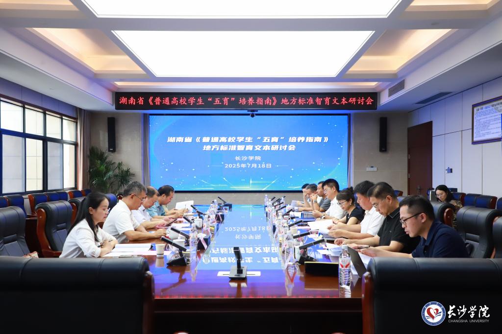 2025(会议现场)7月18日下午,湖南省《普通高校学生“五育”培养指南》地方标准智育文本研讨会在学校长盛楼4001会议室举行。湖南工业大学党委书记刘望,我校校长陈赤平以及来自湖南工业大学、中南林业科技大学、湖南中医药大学等高校的教务部门负责人和教育评估专家代表齐聚一堂,共同探讨普通高校学生“五育”培养的标准...